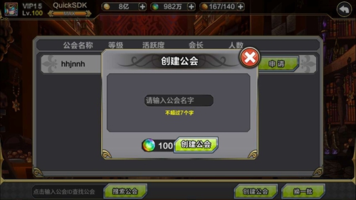 3、创建公会需要填写公会名称,并且需要消耗100预言石。