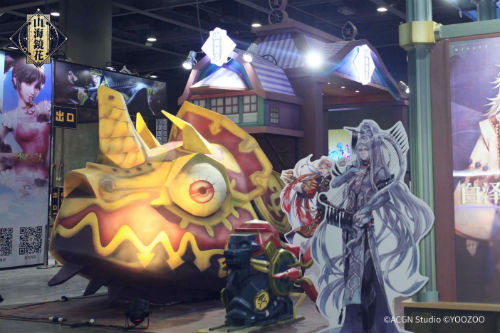 2018年12月30日广州萤火虫漫展,《山海镜花》展台中一个巨大的类似火车头的大家伙,自开展就吸引了众多玩家的驻足观看,短短三日就收获了大批的粉丝前来合影。巨大的眼睛,额