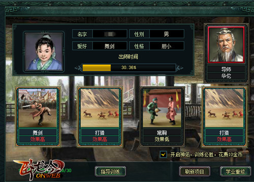 金鳞又是何中物,吾遇风云亦化龙。自古英雄出少年,在《卧龙吟》中你可以决定孩子的出生,学习,锻炼,直到成为一个真正的英雄,助你三国沙场战无不胜。